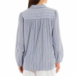 Top 10 🔥 Alex Marie Logan Button Down Collar Long Sleeve Elastic Cuff Striped Blouse Blue/white 😉