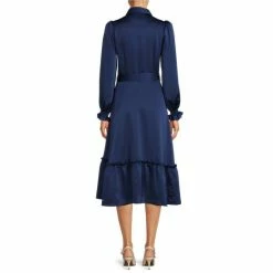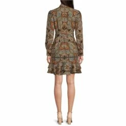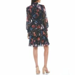 Promo ⌛ Alex Marie Floral Print Rosalia Split Long Sleeve Turtleneck Layered Hem 👗 Dress Navy ✨
