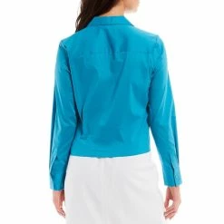 Flash Sale 😀 Alex Marie Niah Stretch Poplin Button Down Tie Point Collar Neck Long Sleeve Blouse Ocean Blue 🥰