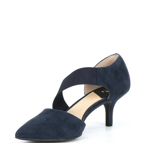 Best deal 🤩 Alex Marie Brandlin Suede Asymmetrical Strap Pumps Seaport Navy ✔️