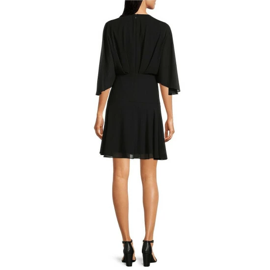 - 3/4 flutter cape sleeves