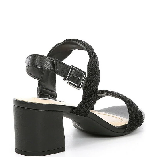 From Alex Marie, the Devah Braided Rope Block Heel Sandals feature:
