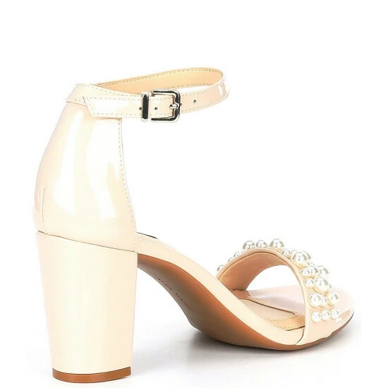 Coupon 😍 Alex Marie HalmarThree Patent Pearl Strap Block Heel 🩴 Sandals Powder Pink ⌛