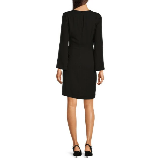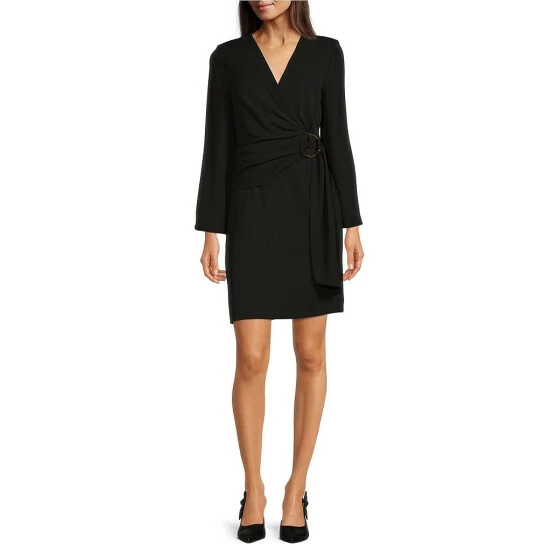 Cheapest ๐Ÿงจ Alex Marie Petite Size Jolie Surplice V-Neck Long Sleeve Stretch Crepe Gathered Ring Waist Faux Wrap ๐Ÿ‘— Dress Black โค๏ธ