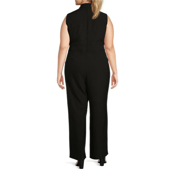 Hot Sale ⭐ Alex Marie Plus Size Zoey Stretch Crepe Cowl Neck Sleeveless Belted Jumpsuit Black 🎁