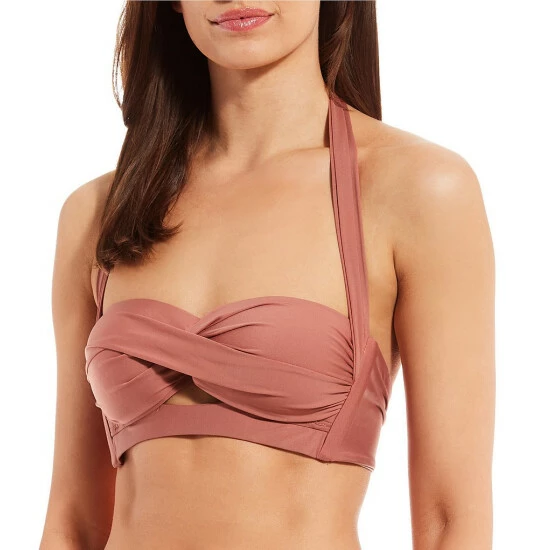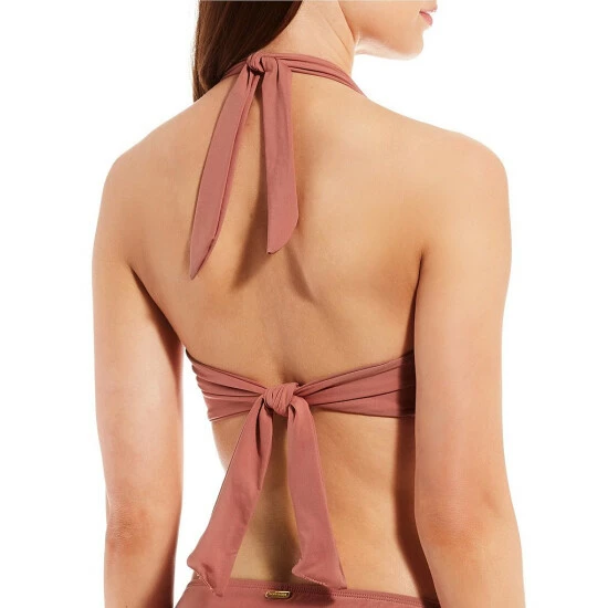 Hot Sale 💯 Alex Marie Solid Cutout Twist Halter Swim Top Rouge 🛒
